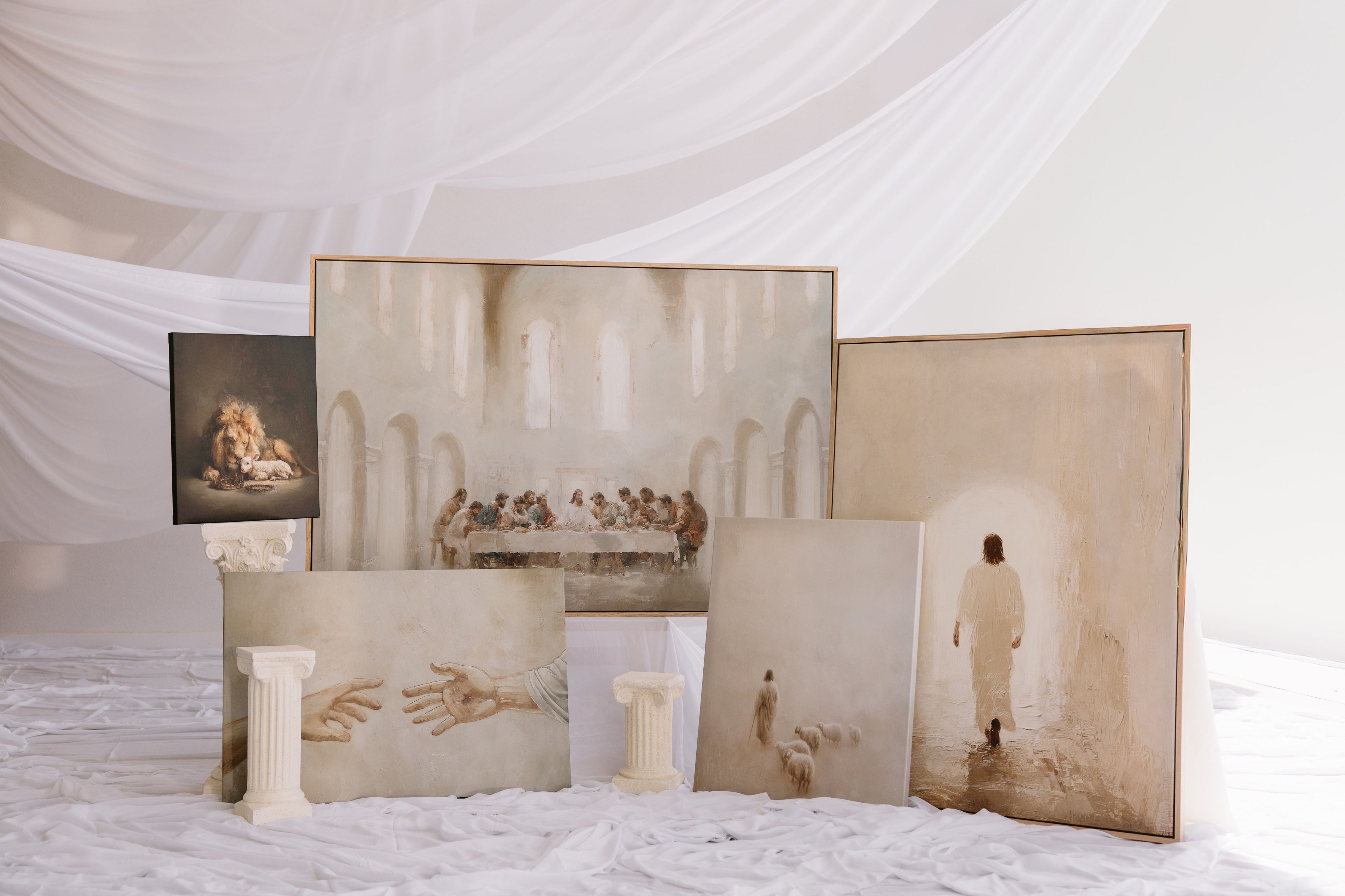 I love all the pieces and that they each have deep meaning behind them that comes from the Bible. The art is aesthetic and elevates a home setting to a whole new level!!! If you love meaningful aesthetic this is the place to be. Also I loooove that they come with a frame !!!! Huge win ! The frame is also very aesthetic and all you have to do is hang it up!